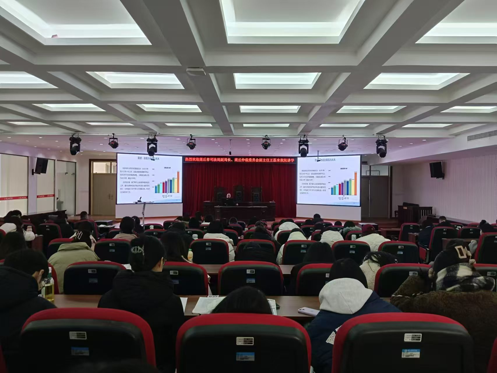 讲座伊始,王磊以其深厚的专业素养和丰富的实践经验,从仲裁的基本概念入手,深入剖析了仲裁的起源、发展历程以及在现代法律体系中的重要地位和独特作用。他通过结合自身多年积累的丰富案例,生动形象地展示了仲裁在各个领域的具体应用和实践操作细节。从商事合同纠纷到知识产权争议,从劳动人事纠纷到国际商事仲裁,王磊用一个个真实生动的案例,让同学们仿佛置身于仲裁现场,深刻感受到了仲裁的灵活性、专业性和高效性等优势。