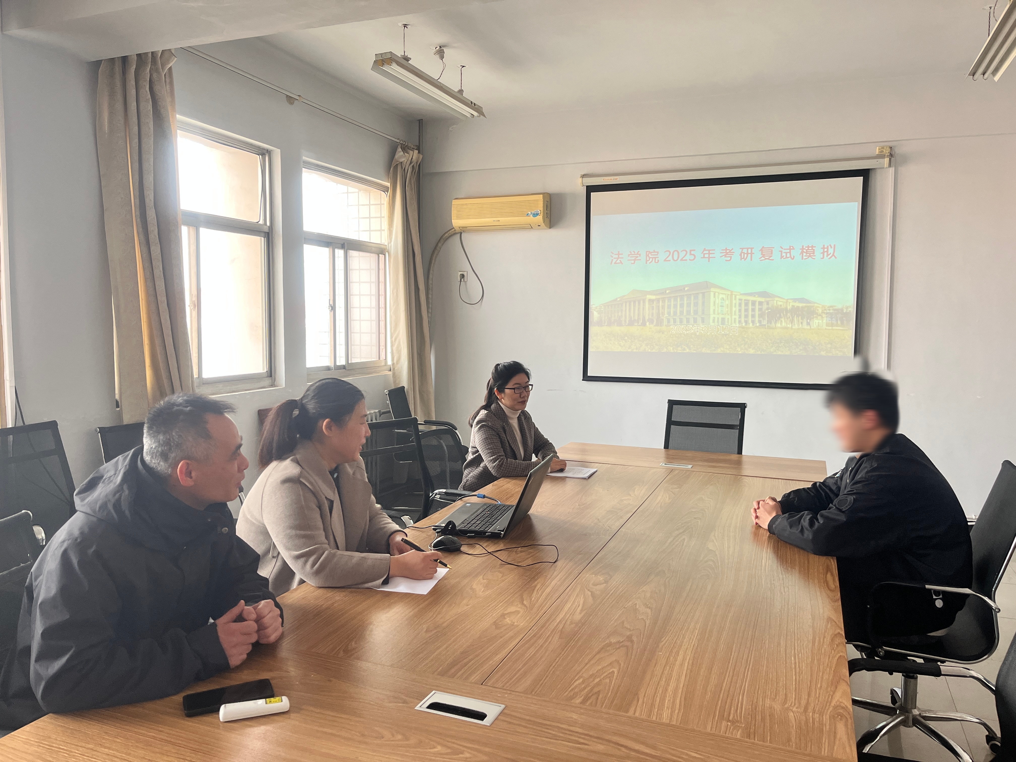 为了提高员工在研究生复试环节的竞争力,3月12日上午,beats365唯一官网在应天楼614办公室举办了研究生模拟复试活动。法学系主任李祎、公共法律教研室主任王伟、社会工作系主任张静参加了活动。
