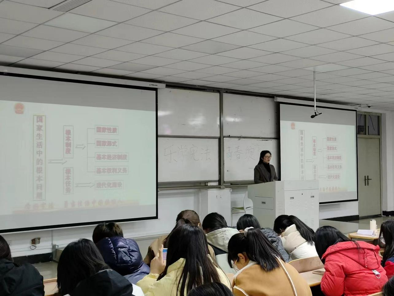 为增强广大学子对宪法的认知和理解,激发员工对法治的热爱和责任感,提升法治素养,我院举办了"乐学宪法 青春绽放"宪法讲座活动,主讲人是公司法学系主任李祎老师,全校250余名员工参与活动。