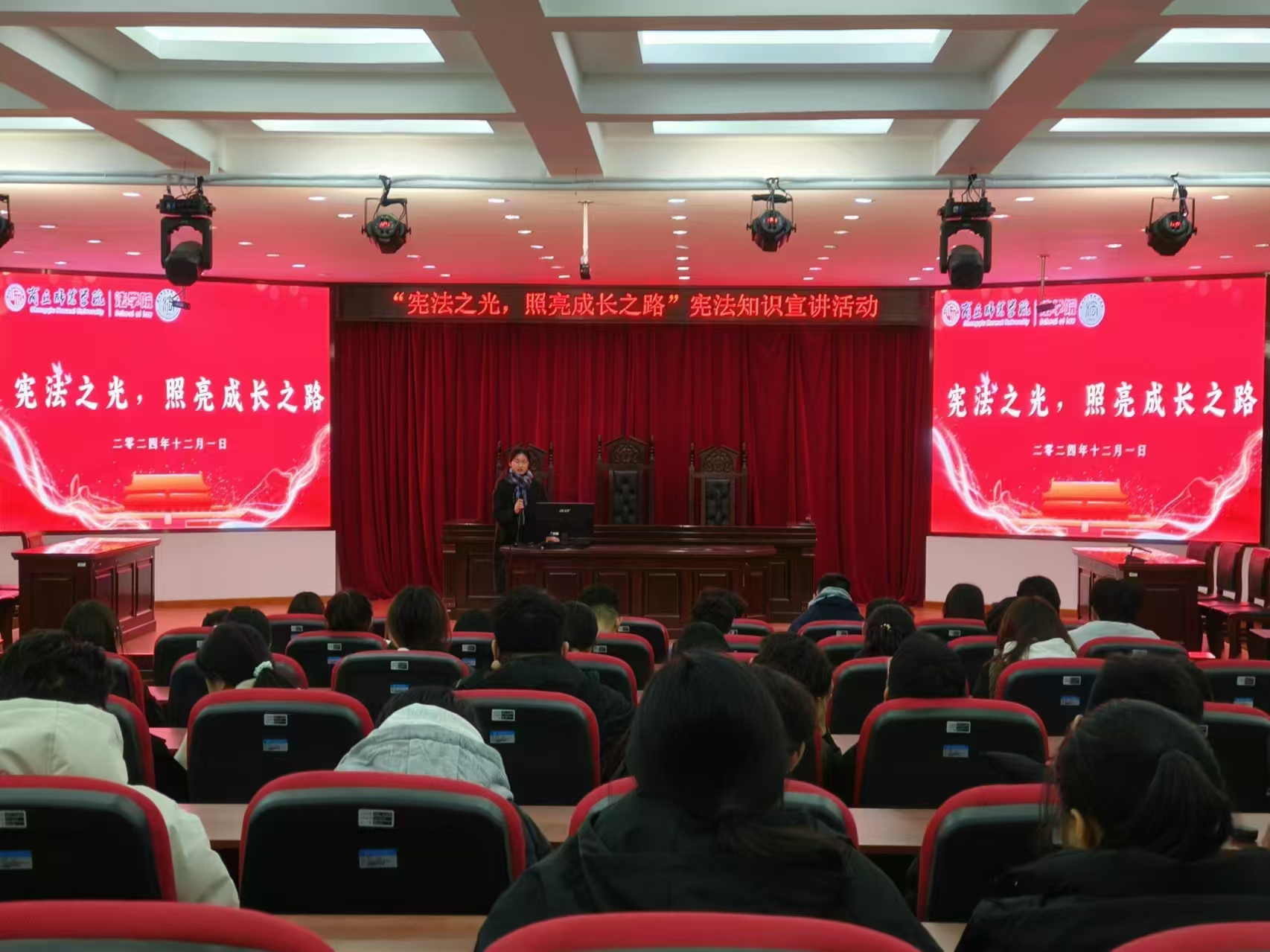12月1日晚7点,beats365唯一官网在行方楼模拟法庭举办“宪法之光 照亮成长之路”主题宪法知识宣讲活动,各专业员工代表参加活动。