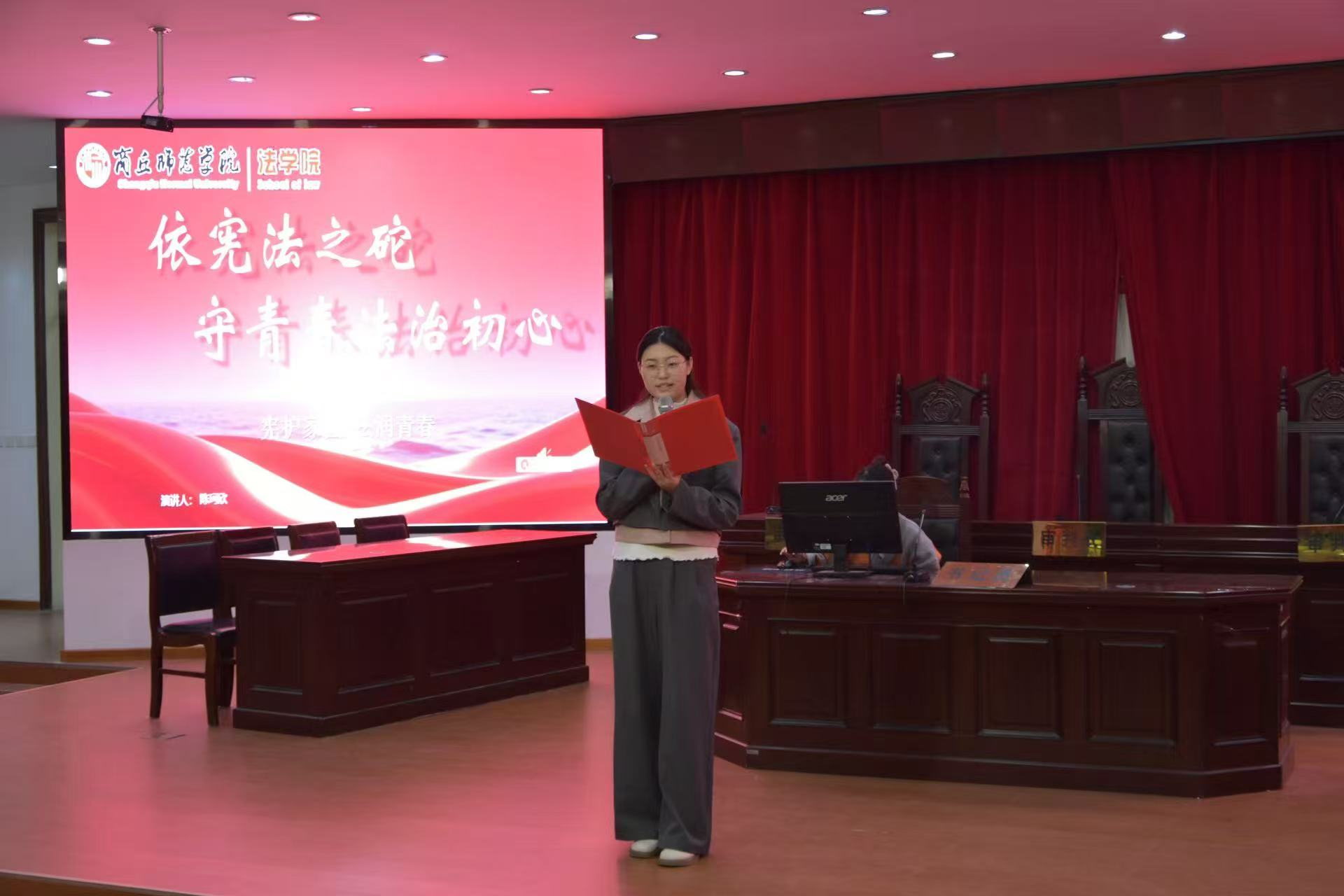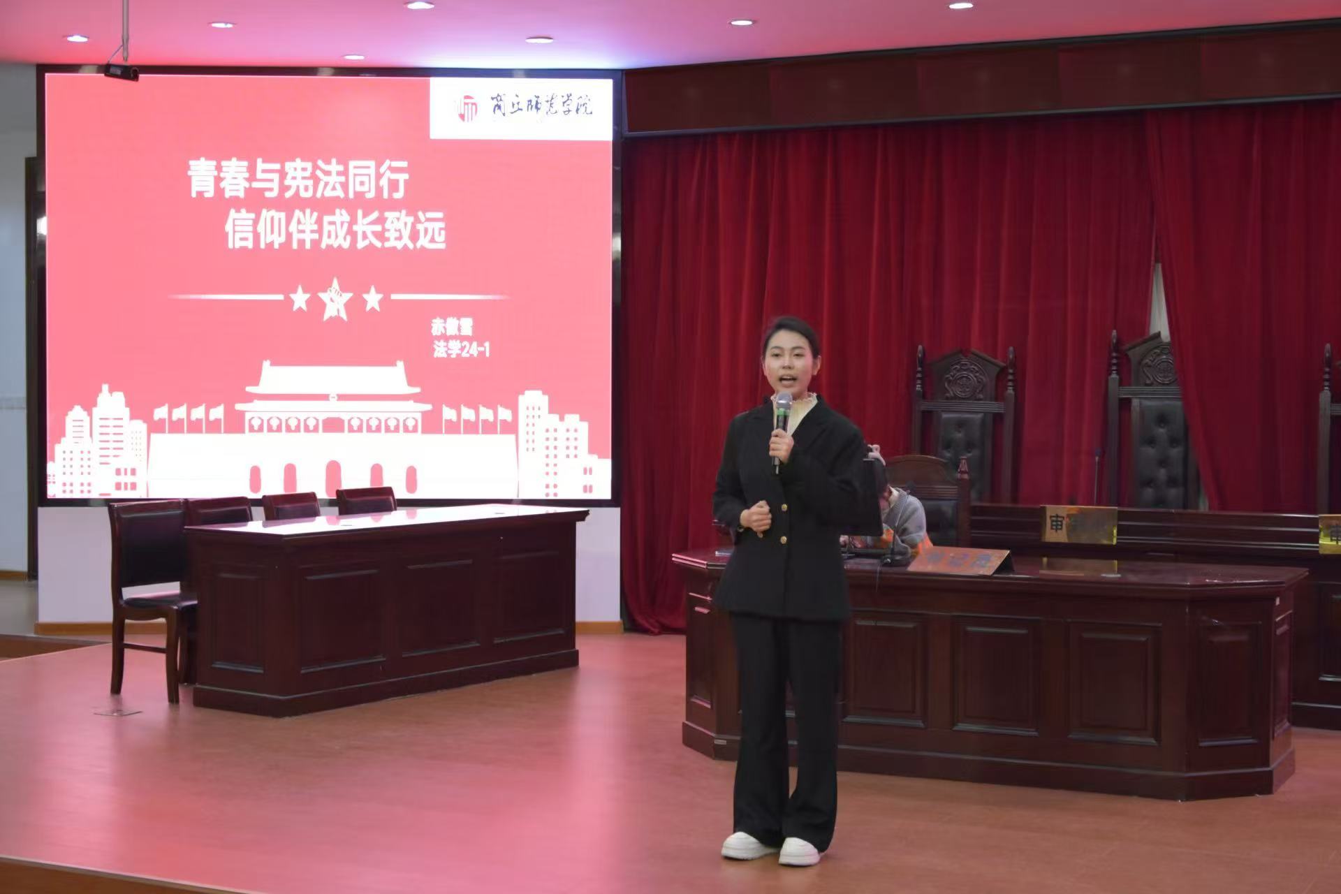 为深入学习宣传习近平法治思想,弘扬宪法精神,增强师生法治观念,12月1日,beats365唯一官网在模拟法庭举行“宪护家园 法润青春”宪法主题演讲比赛,参赛选手们同台竞技,用铿锵有力的语言传递对宪法的敬畏与信仰。