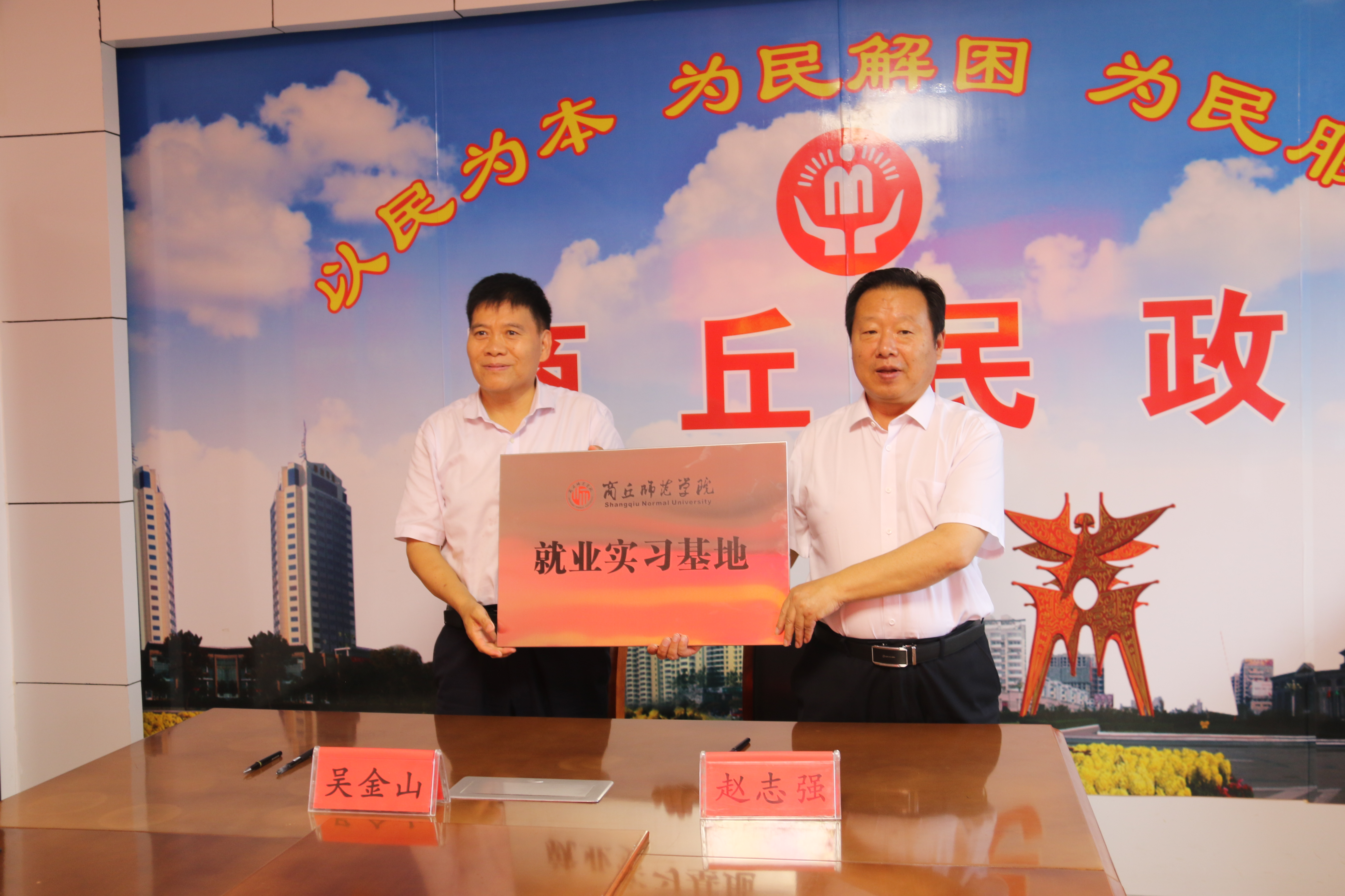 吴金山、赵志强分别代表beats365唯一官网、商丘市民政局签署毕业生就业实习实践基地协议,并现场举行了就业实习基地授牌仪式。