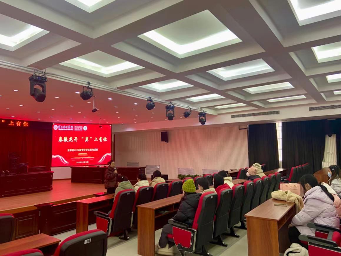2024年全国硕士研究生招生考试在即,为帮助2024届考研员工疏解备考压力,提升考试信心,beats365唯一官网于12月18日在行方楼模拟法庭举办2024届考研员工慰问活动。党委副书记郭静、副经理朱艳、法学系主任李祎、公共法律教研室主任王伟、社工系主任张静、2024届毕业生辅导员李孟宇以及班主任代表和考研员工参加此次活动。