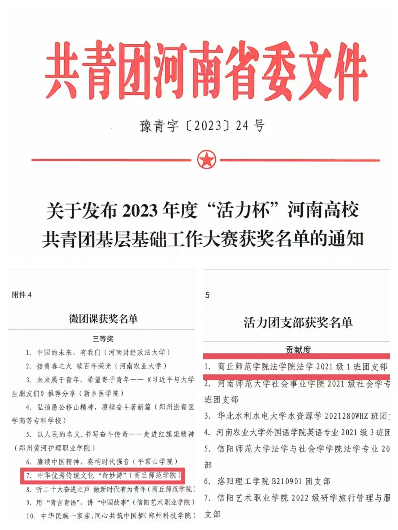 12月17日—19日,2023年度“活力杯”河南省高校共青团基层基础工作大赛决赛在洛阳理工公司成功举办。公司团委书记刘丹与法学 2021 级 1 班团支部书记王梦洁在决赛中表现优异,刘丹老师的微团课《中华优秀传统文化“奇妙游”》荣获三等奖;法学 2021 级 1 班团支部荣获活力团支部。