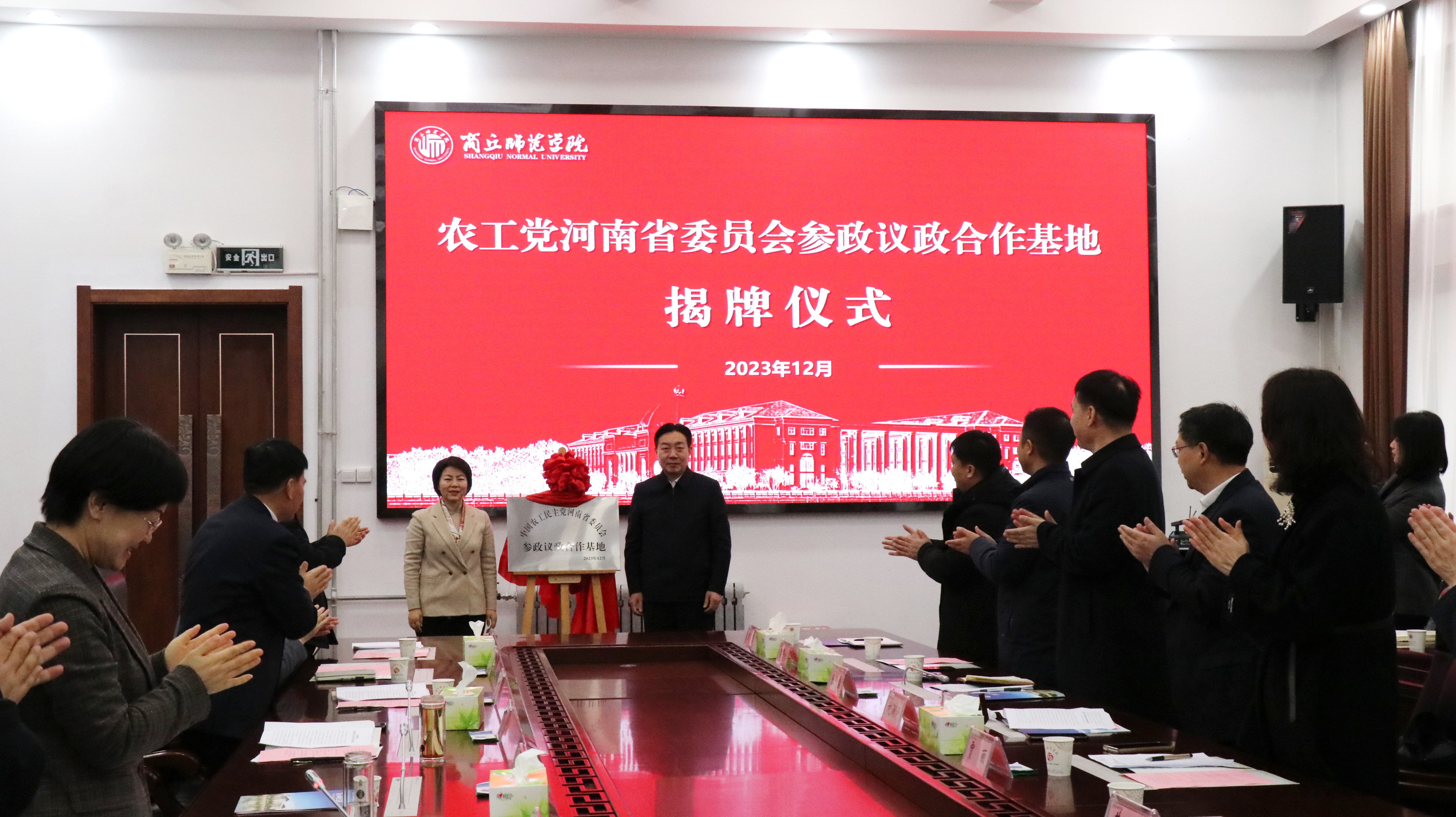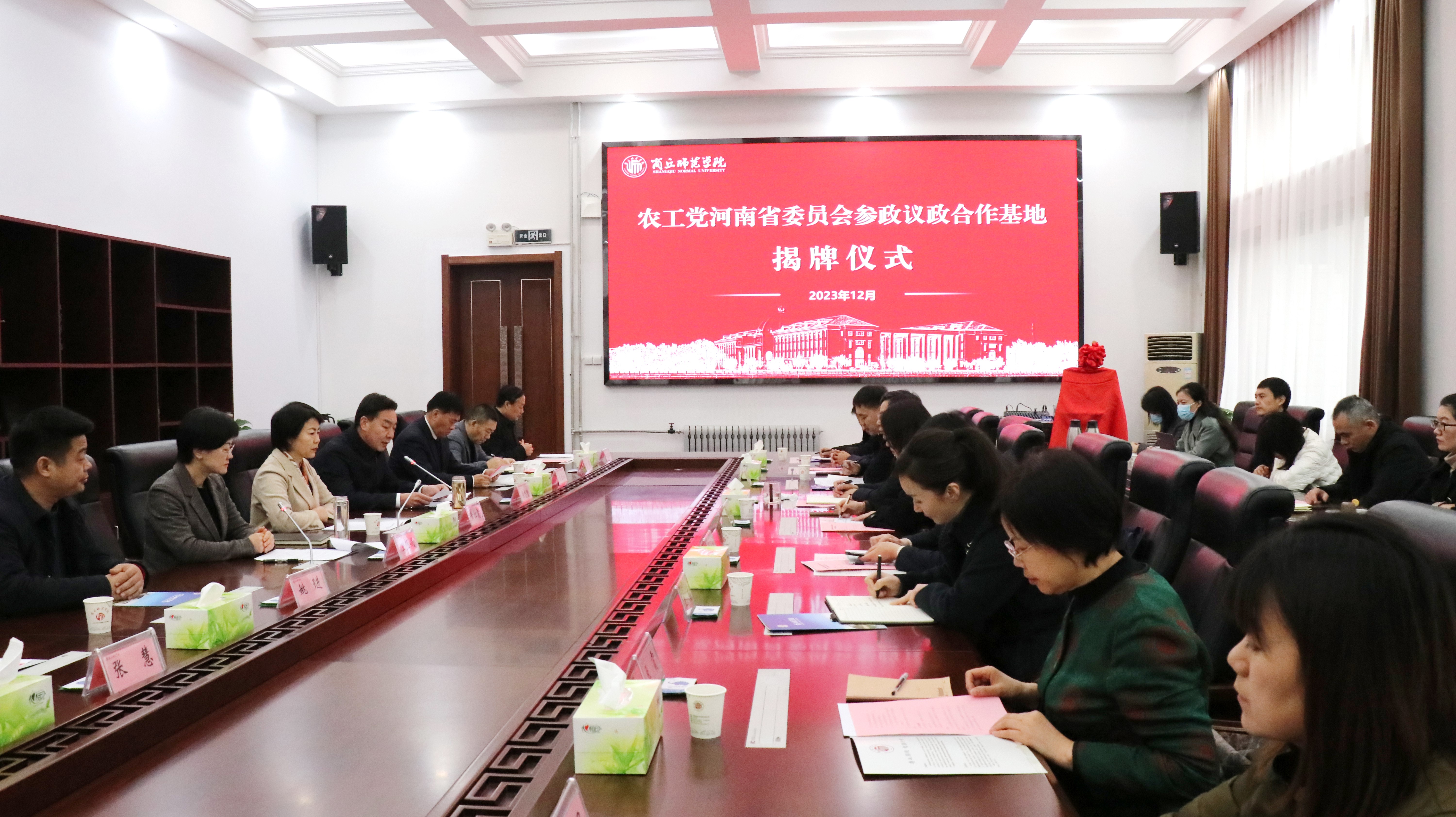 为更好地发挥民主党派基层组织的作用及高校人才智力优势,进一步加强参政党参政议政能力建设,12月29日上午,农工党河南省委员会参政议政合作基地揭牌仪式在公司归德楼320会议室隆重举行。第十四届全国政协委员、农工党中央委员会常委、河南省委会主委、省卫生健康委员会主任黄红霞,商丘市委副书记、统战部部长王玉娟,公司党委书记张志坚、党委副书记吴金山出席揭牌仪式。仪式由商丘市委副书记、统战部部长王玉娟主持。