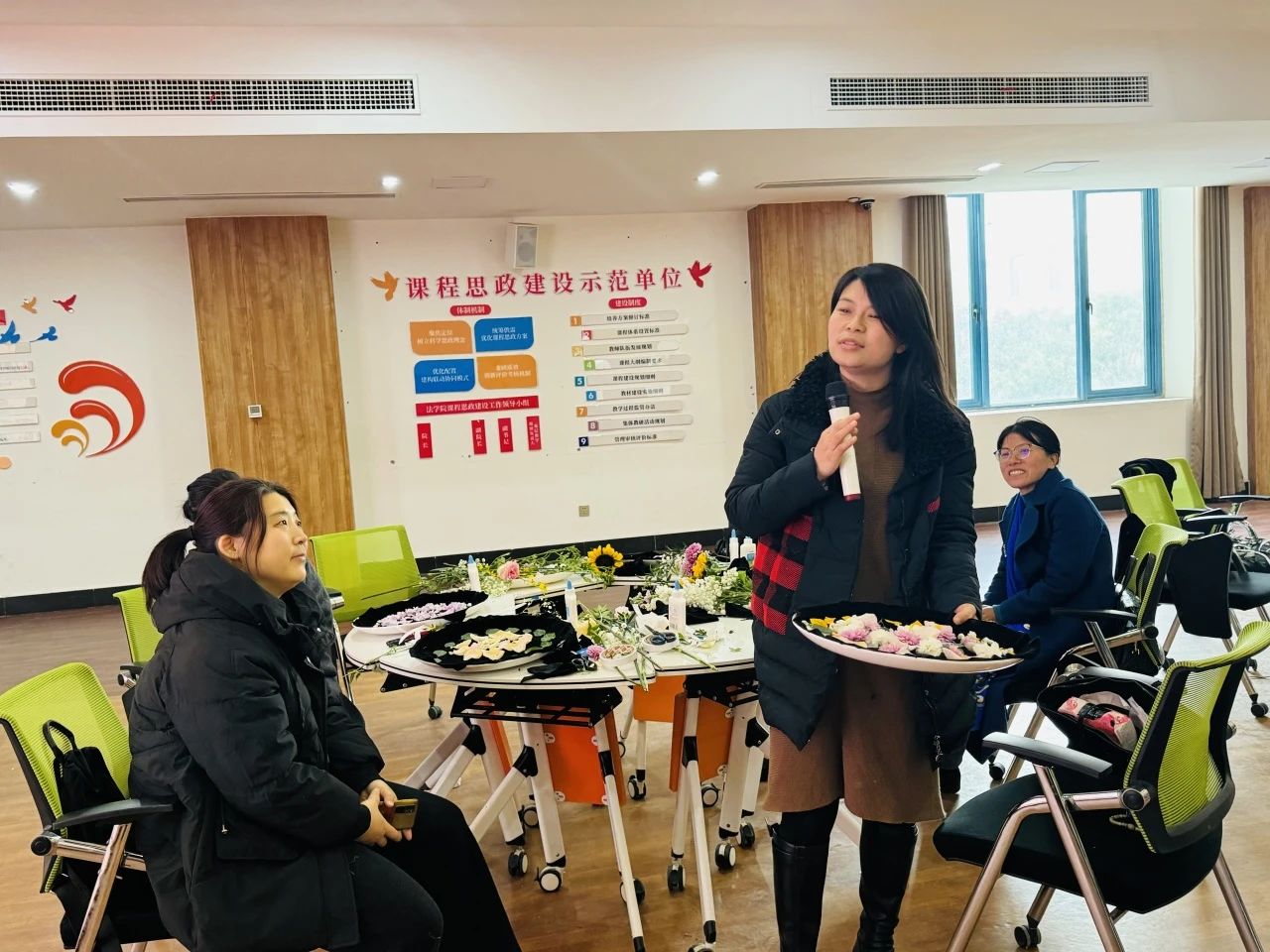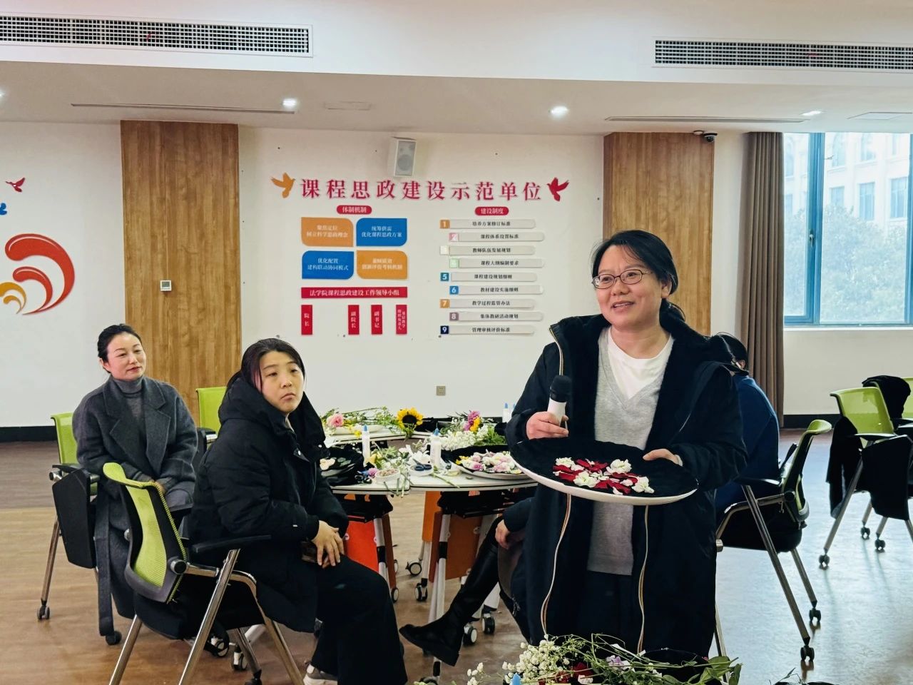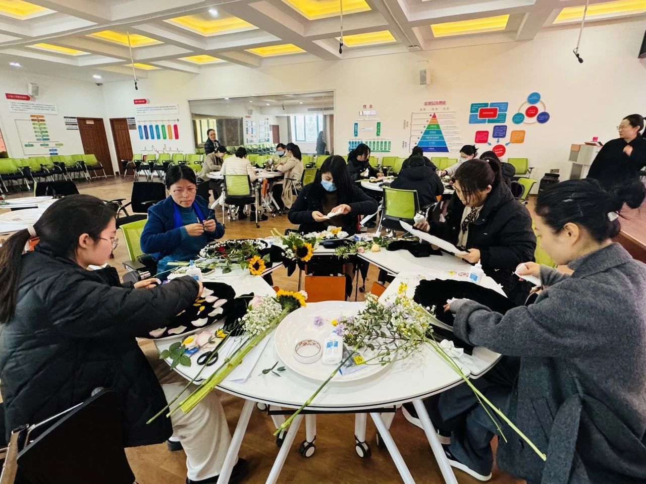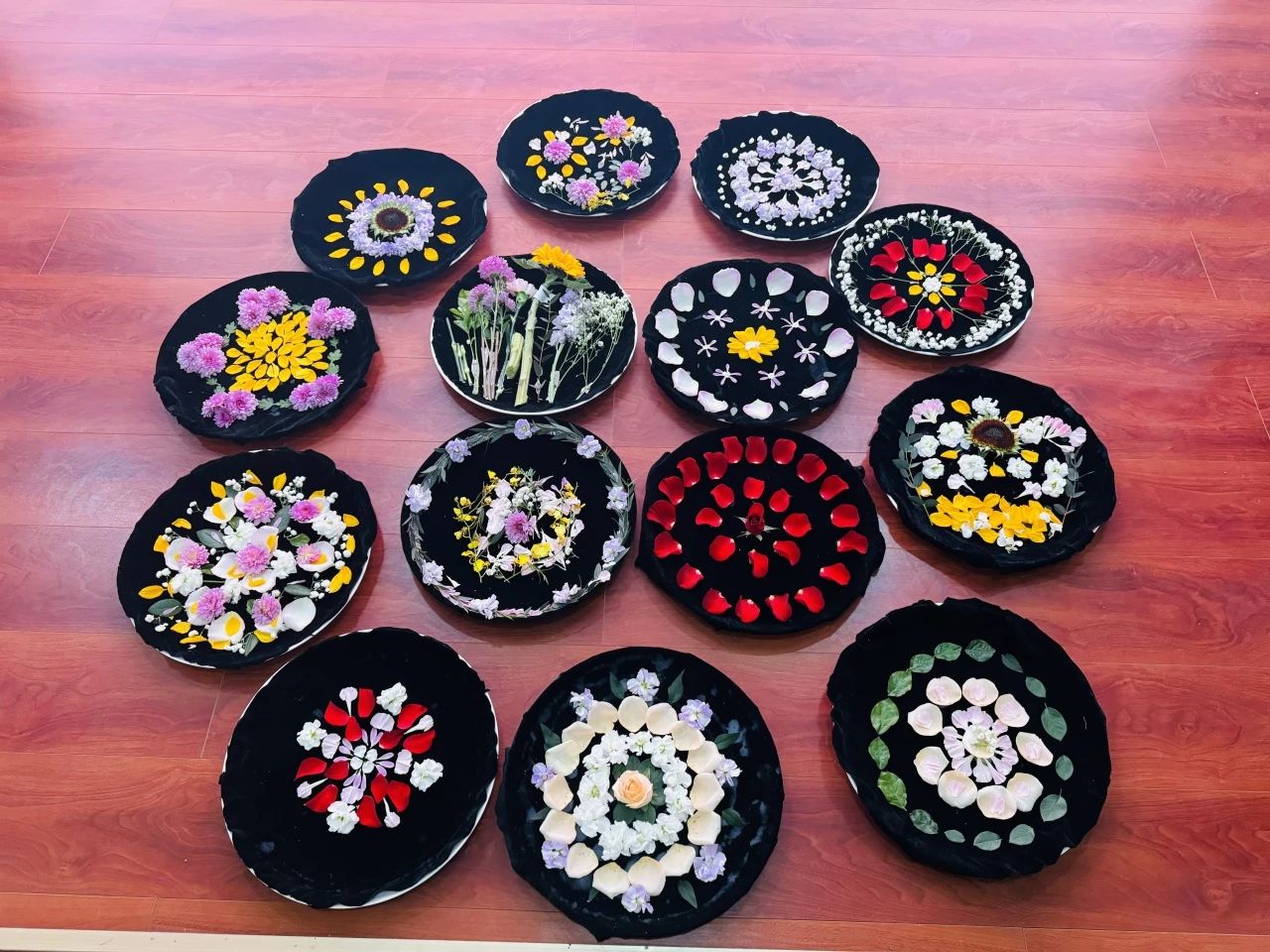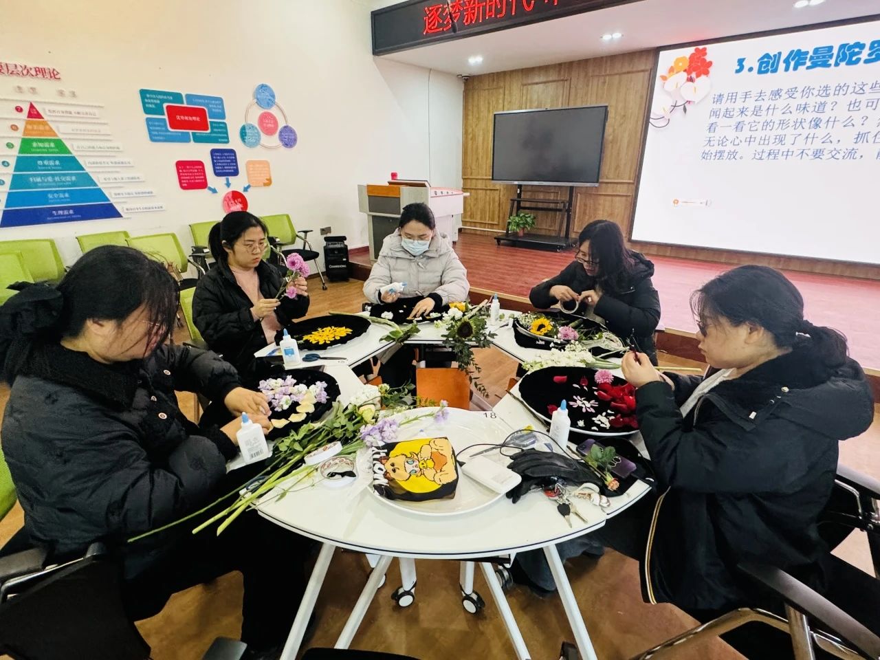 大家在张老师的引领下,通过冥想练习,使身心舒缓、思绪集中,在轻柔的音乐声中,将花瓣、枝叶自由设计,在一幅幅各具特色的花盘作品诞生后,大家分别展示并相互分享感悟。大家一致认为,此次活动形式新颖,契合女教工的实际特点和需要,通过畅开心扉,分享交流,不仅使身心得到了放松和疗愈,同时为今后的工作学习积蓄了能量。