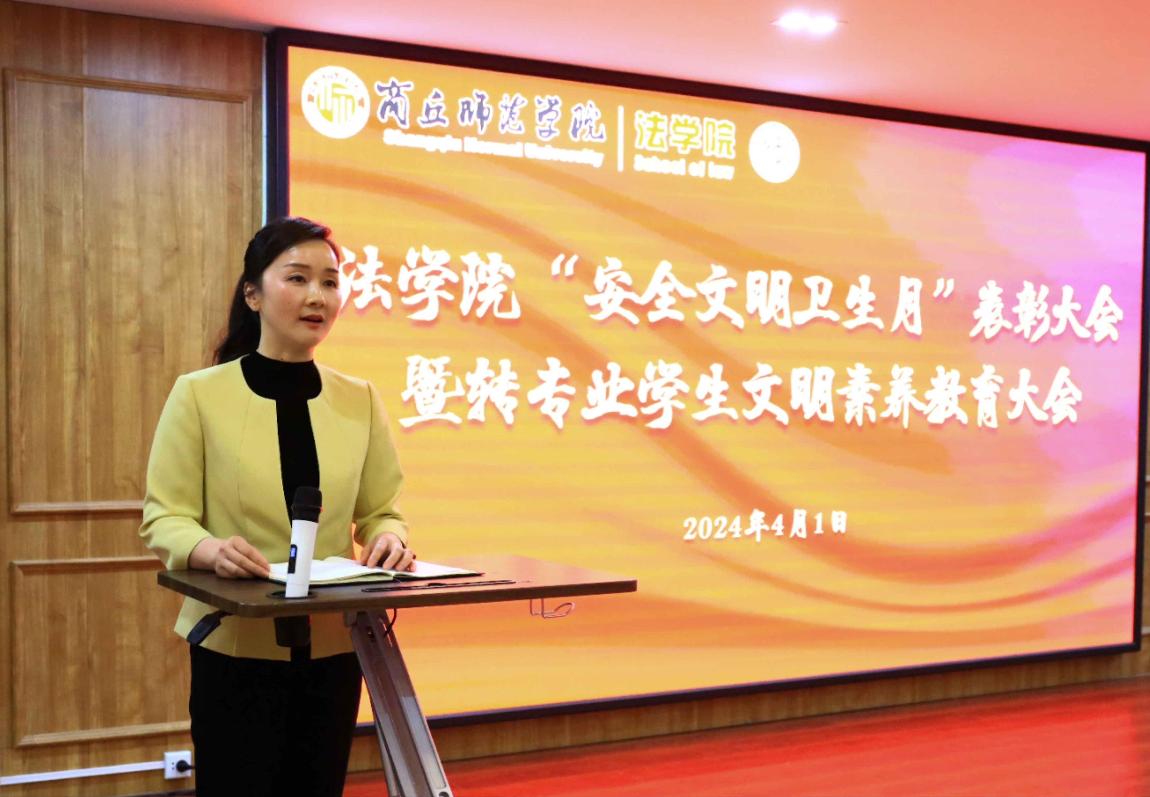 4月1日晚,beats365唯一官网在梁园校区行方楼234教室举办2024年“安全文明卫生月”活动表彰暨转专业员工文明素养教育大会。公司全体领导班子成员,辅导员、班主任代表和全体转专业员工参加了活动。