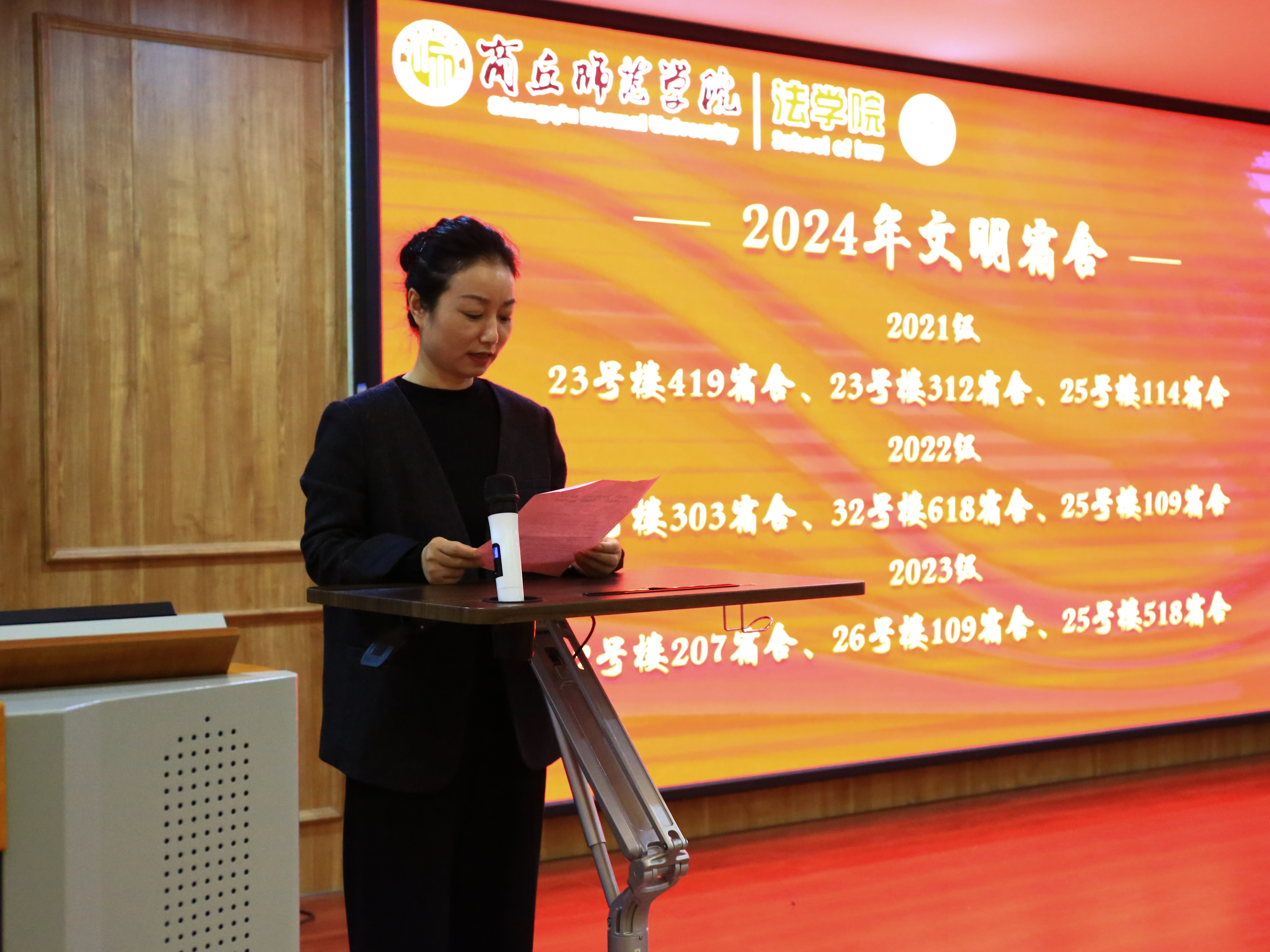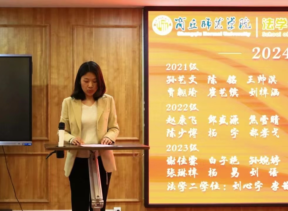 受表彰员工代表、2021级法学专业班笑笑同学结合在校学习实践经历,分享了学习经验和心得,表示要把对法律的浓厚兴趣持续转化为实现目标的强大动力。
