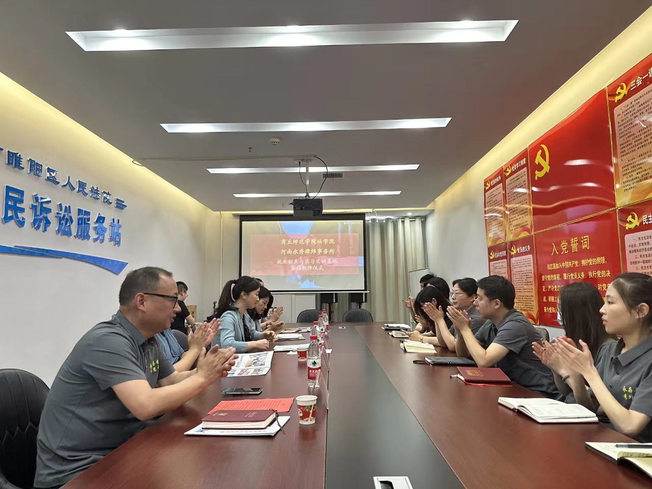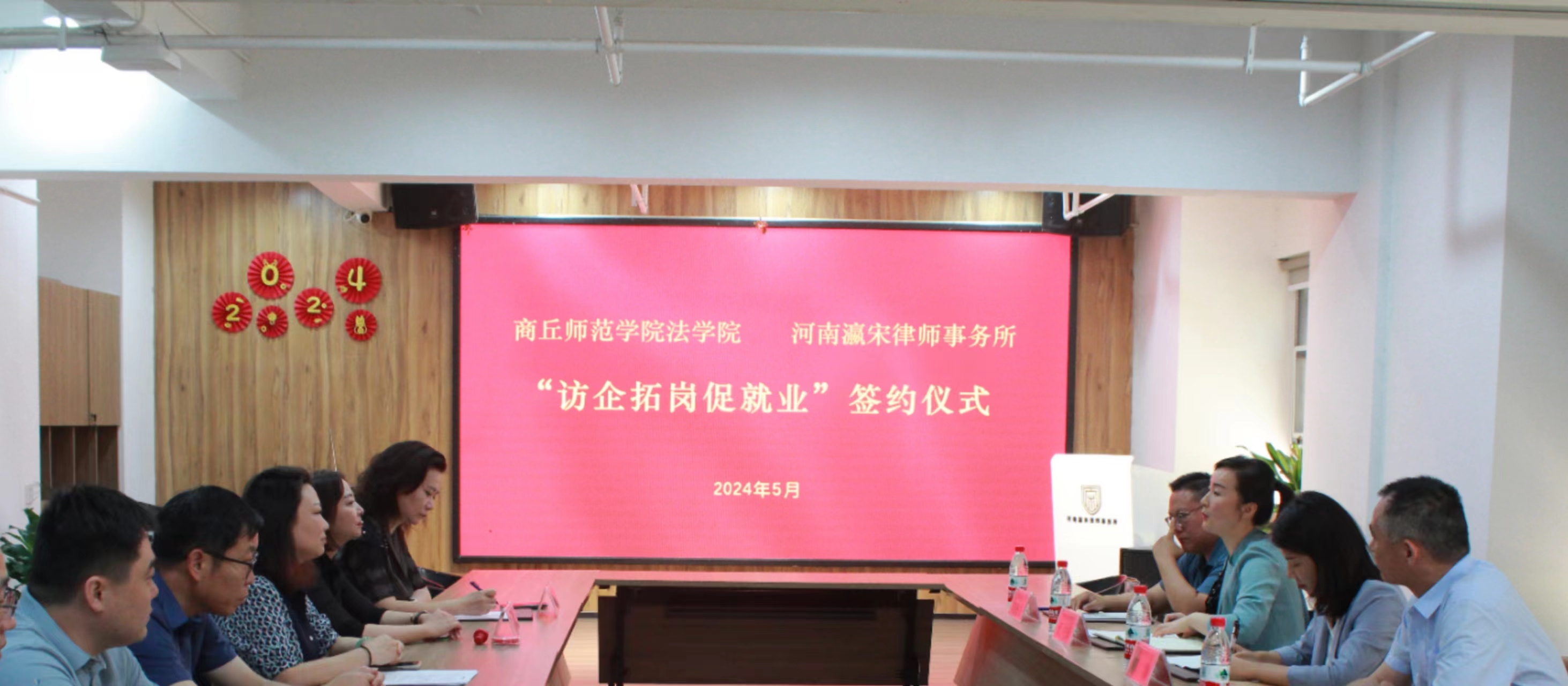为深入开展2024届毕业生访企拓岗促就业专项行动,高效对接用人单位需求,促进毕业生高质量实习实训与就业,5月16日上午,公司党委书记王庆、副书记郭静,党政办主任刁乾鹤、公共法律教研室主任王伟赴河南永秀律师事务所、瀛宋律师事务所开展访企拓岗暨就业实践基地建设调研工作。