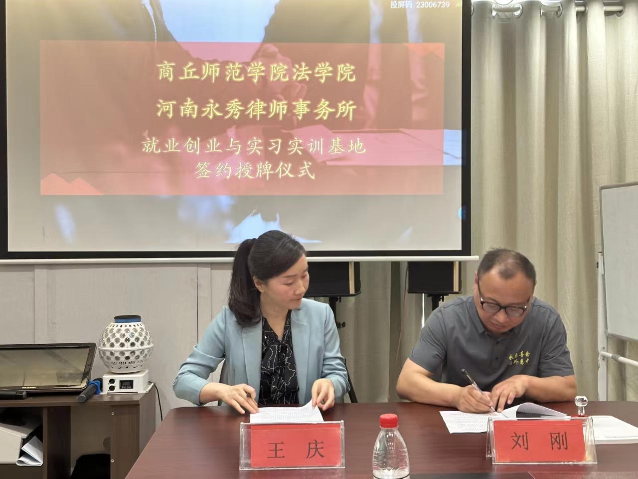 会后,王庆与律所分别签署毕业生就业实习实践基地协议,并举行了就业实习基地授牌仪式。