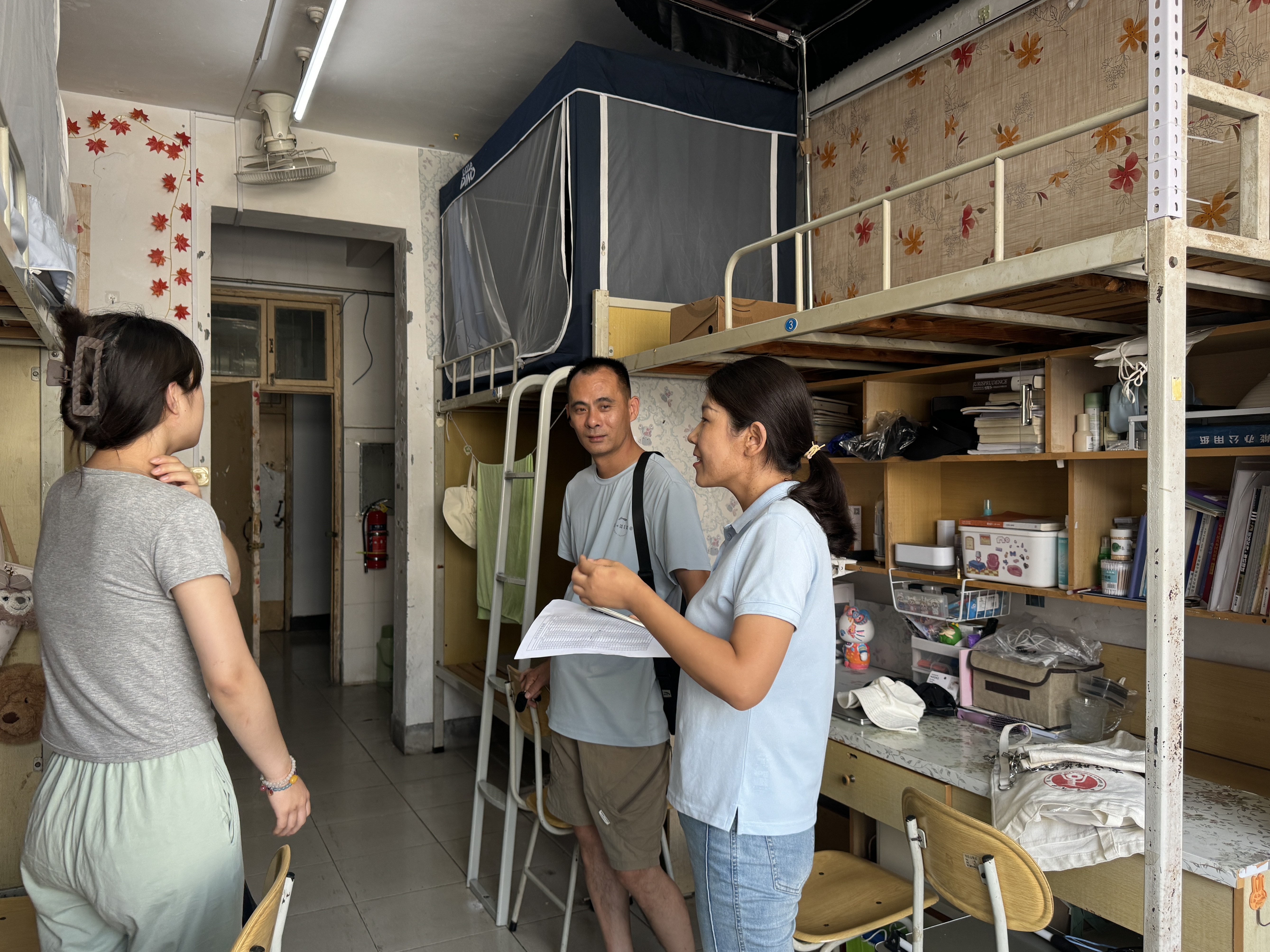 为切实落实新学期员工安全返校工作,8月30日-9月1日,公司领导班子、全体辅导员和班主任老师逐一探访全院员工宿舍,深入了解新学期员工返校、假期生活、思想状况和宿舍安全等情况。