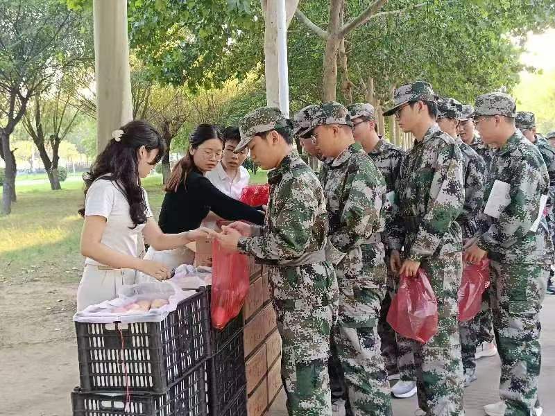秋风送爽,丹桂飘香,在中秋佳节来临之际,9月16日下午,公司党委副书记郭静、副经理朱艳、团委书记刘丹、学工办主任康昕和新生辅导员李孟宇老师代表公司到新生军训场看望慰问,为2024级新生送月饼水果、送节日祝福。