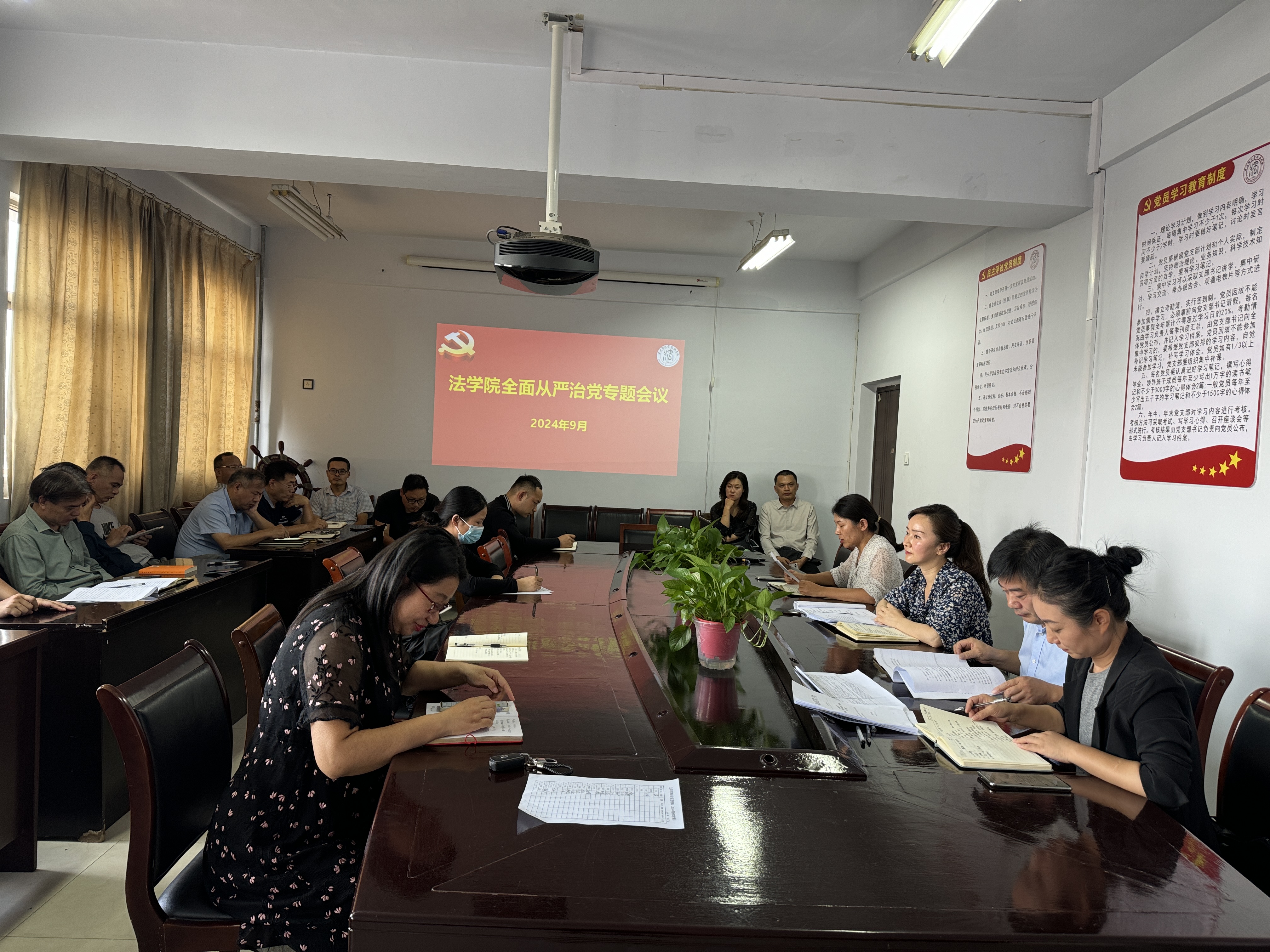 公司党委书记王庆传达了公司党委会(扩大)会议精神,强调要深入贯彻落实习近平总书记关于党的建设的重要思想、关于党的自我革命的重要思想,不断深化对全面从严治党重大意义的认识,从党的百年奋斗历程中汲取智慧和力量。要做全面从严治党的坚定践行者,在强化理论武装、切实转变作风、融入工作实践中落实立德树人根本任务,提升应用型法治人才培养质量,不断巩固深化党纪学习教育成果,营造风清气正的政治生态和育人环境。