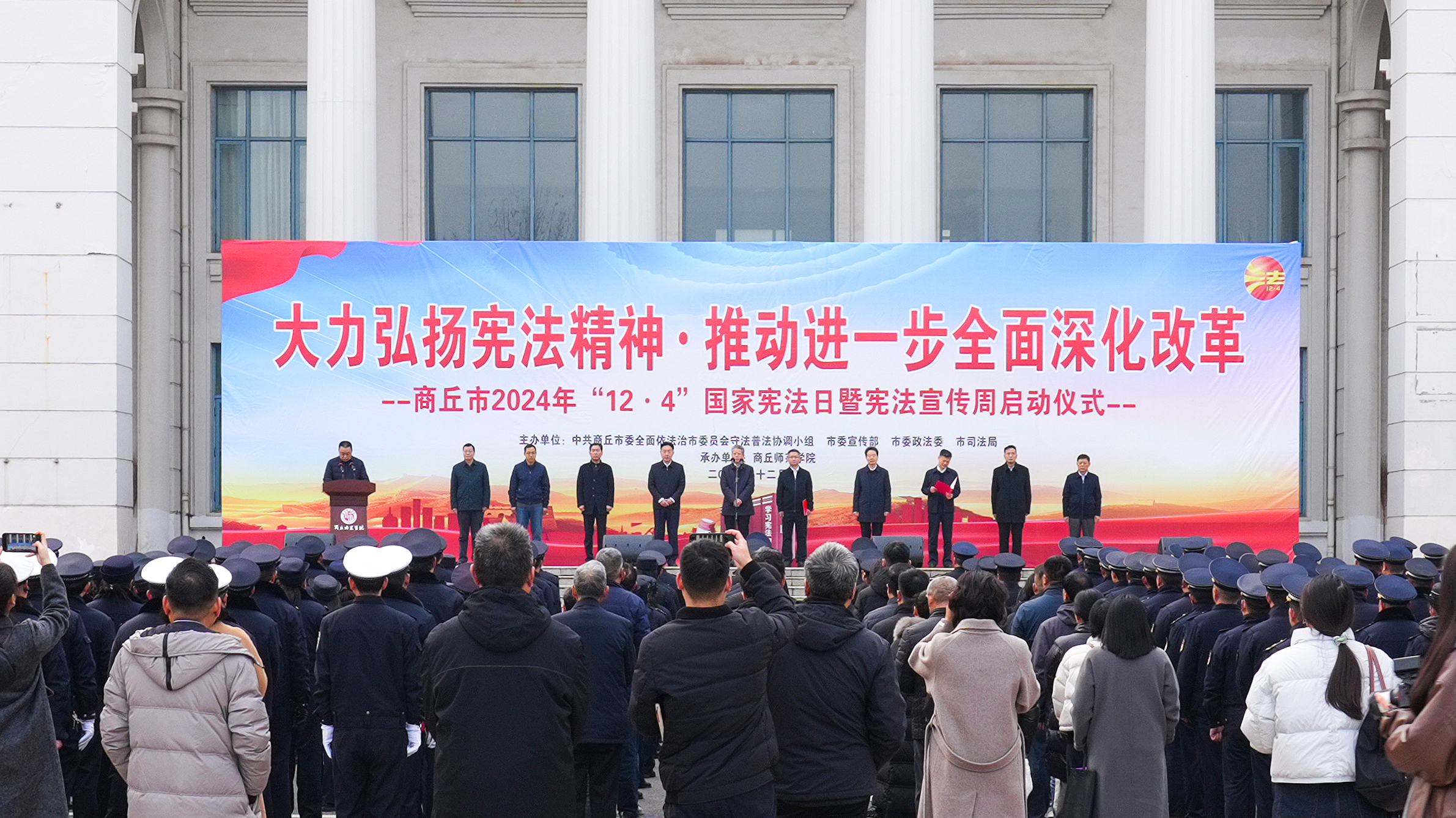 12月4日,是第十一个国家宪法日。当天上午,商丘市2024年“宪法宣传周”启动仪式在公司举行。商丘市委常委、市委政法委书记潘峰出席并宣布“宪法宣传周”正式启动。商丘市委常委、市委宣传部部长翁铁军出席并发出倡议。公司党委书记张志坚、董事长陈向炜,商丘市人大常委会副主任、民建市委会主委刘北京,商丘市人民政府副市长、市公安局局长黄继恒,商丘市政协副主席王全国,商丘市人民检察院检察长王建波出席。