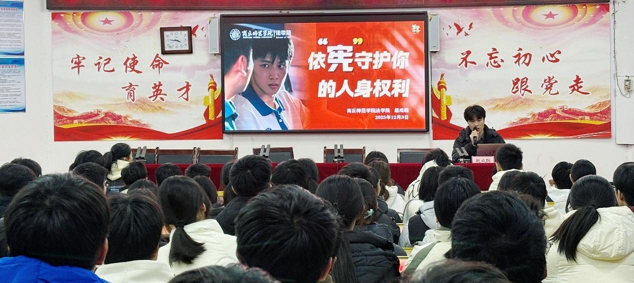 为迎接12月4日国家宪法日,积极投身宪法宣传教育实践,以实际行动彰显育人担当与社会责任,12月3日下午,应商丘市睢阳区人民检察院与商丘市第四高级中学邀请,公司师生走进商丘市第四高级中学开展“送法进校园”普法宣传活动。此次活动通过法治讲座、现场互动等形式,为在校员工普及宪法知识,强化青少年法治观念,获得了师生一致好评。