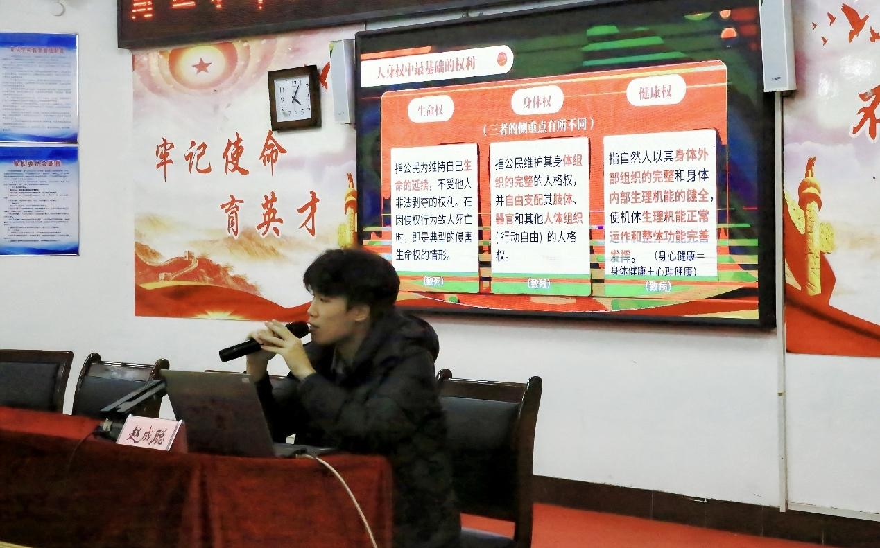 公司赵成聪同学做为宣讲团成员,以《依“宪”守护你的人身权利》为主题,聚焦青少年权益保护,选取校园生活及社会热点中的典型案例,讲解了受教育权、人格尊严权等与中员工息息相关的核心权利,阐明了“公民权利受法律严格保护、神圣不可侵犯”的核心要义,引导同学们逐步树立起清晰的权利观与坚定的法治信仰。在讲解肖像权、名誉权等网络时代高频侵权领域时,赵成聪紧密结合同学们广泛使用社交媒体的生活现状,以“朋友圈照片使用边界”“网络言论责任认定”等具体场景为切入点,深入浅出地揭示了“网络空间不是法外之地”的道理,切实提升了青少年员工的法治意识、安全防范与自我保护能力。